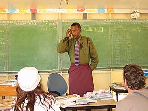 Villagers had set up a market just for us, and we felt compelled to buy tropical trinkets - bracelets and wooden turtles - which on the mainland were three times the price. After passing a house with a grave outside its front door (Fijian real estate agents must have a hell of a time), we were led across a thirsty rugby pitch to the local school, where the principal - a middle-aged man in a purple skirt and tie - had been expecting us.